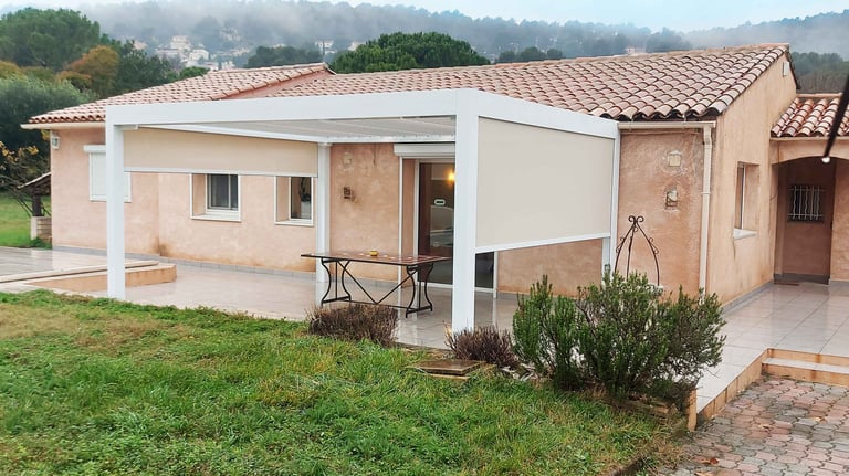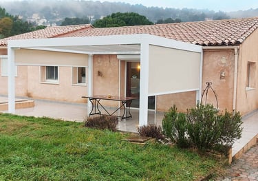 Dépose d'une pergola traditionnelle provençale à carnoux et remplacement par une pergola bioclimatique design et contemporenne.